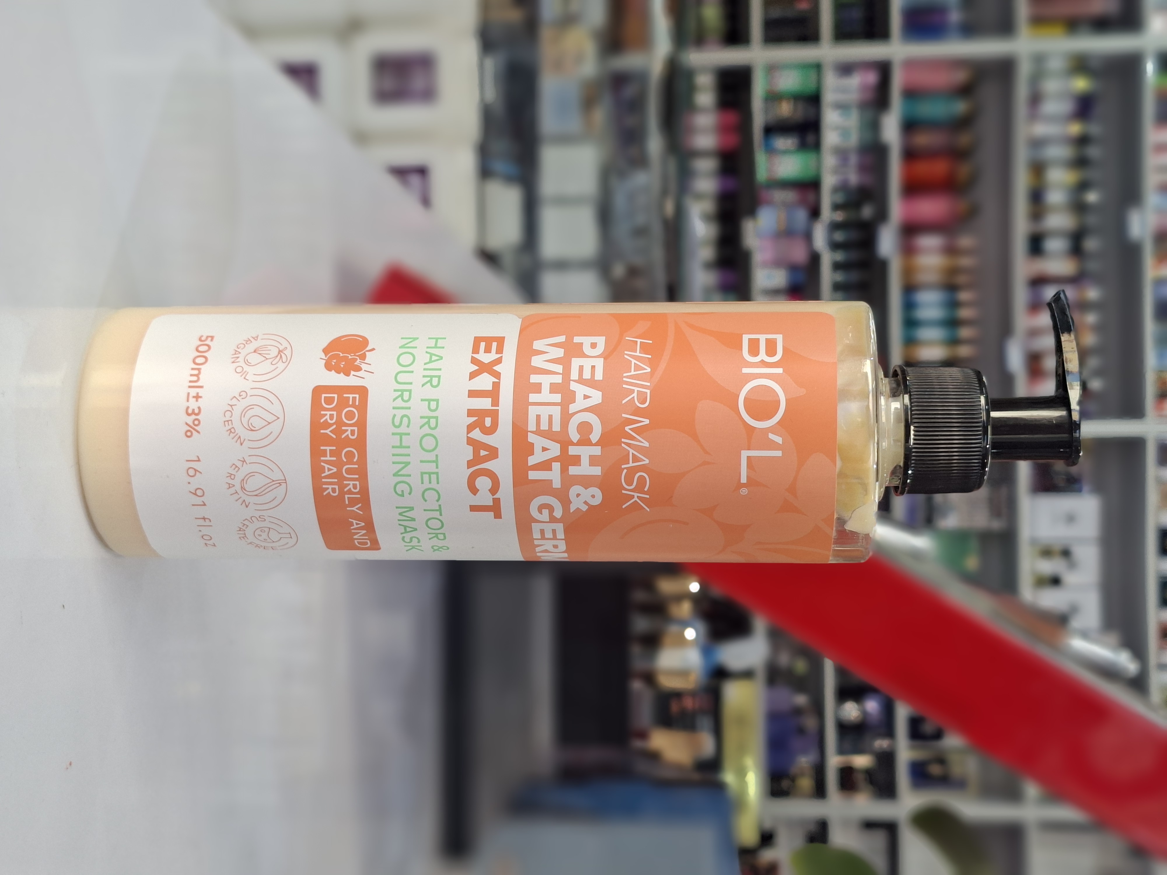 ناموجودماسک مو بیول موهای خشک و فر peach and wheat germ حجم ۵۰۰ میل