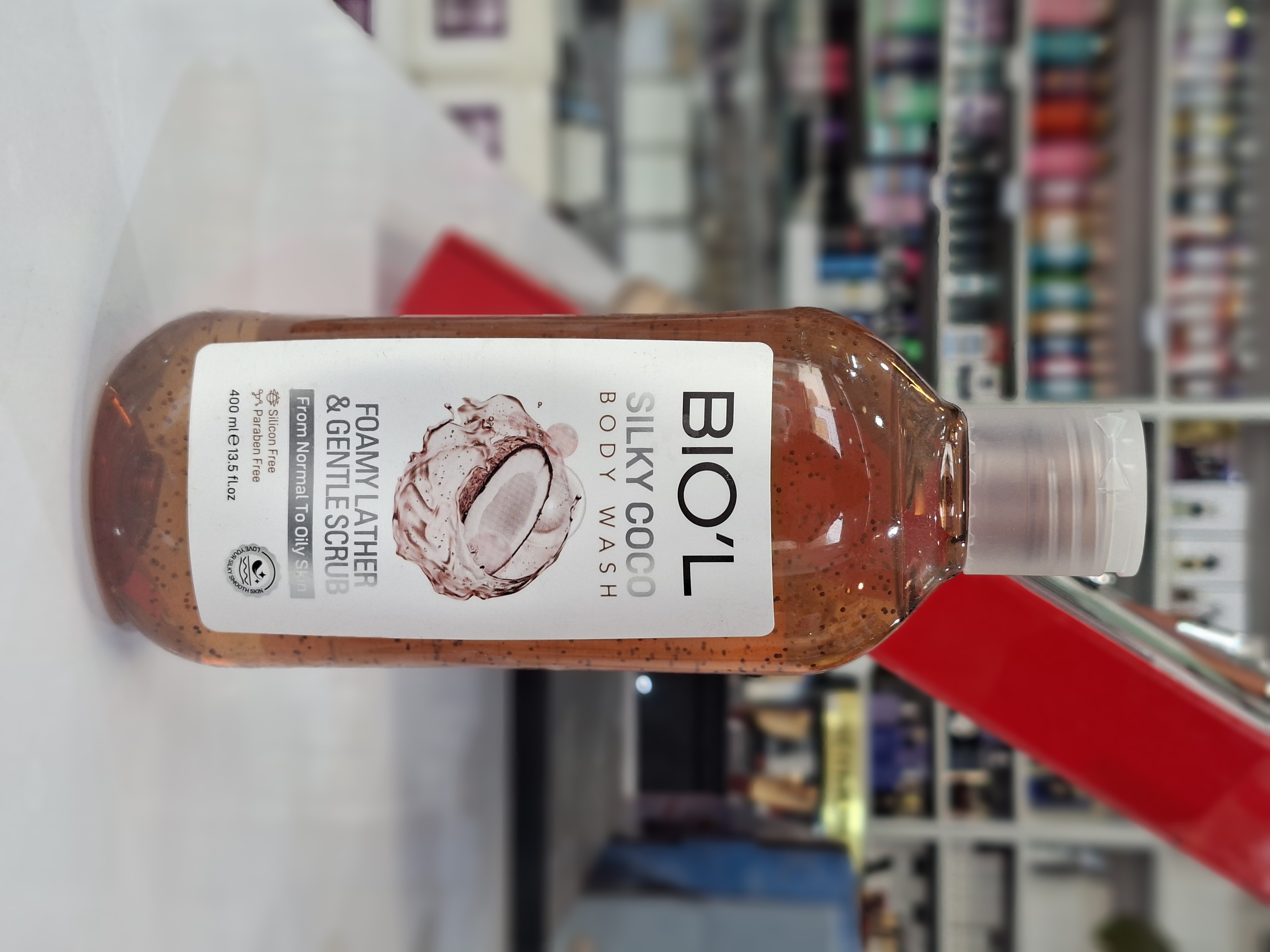 شامپو بدن بیول ژلی حاوی اسکراب silky coco حجم ۴۰۰ میل