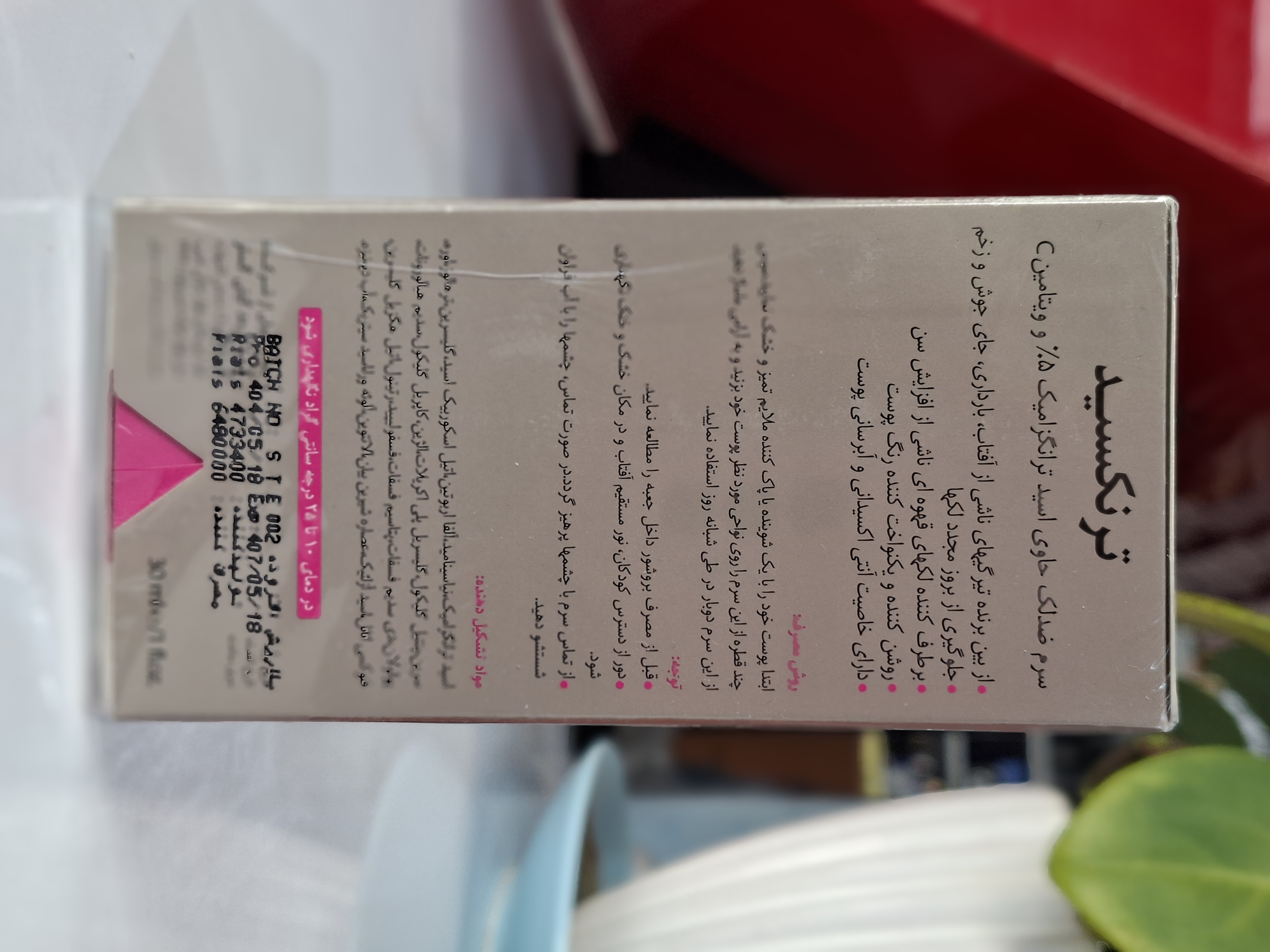 حاوی ترانگزامیک ۵٪ و ویتامین C: از بین برنده قوی تیرگیهای آفتاب، بارداری، جای جوش و زخم