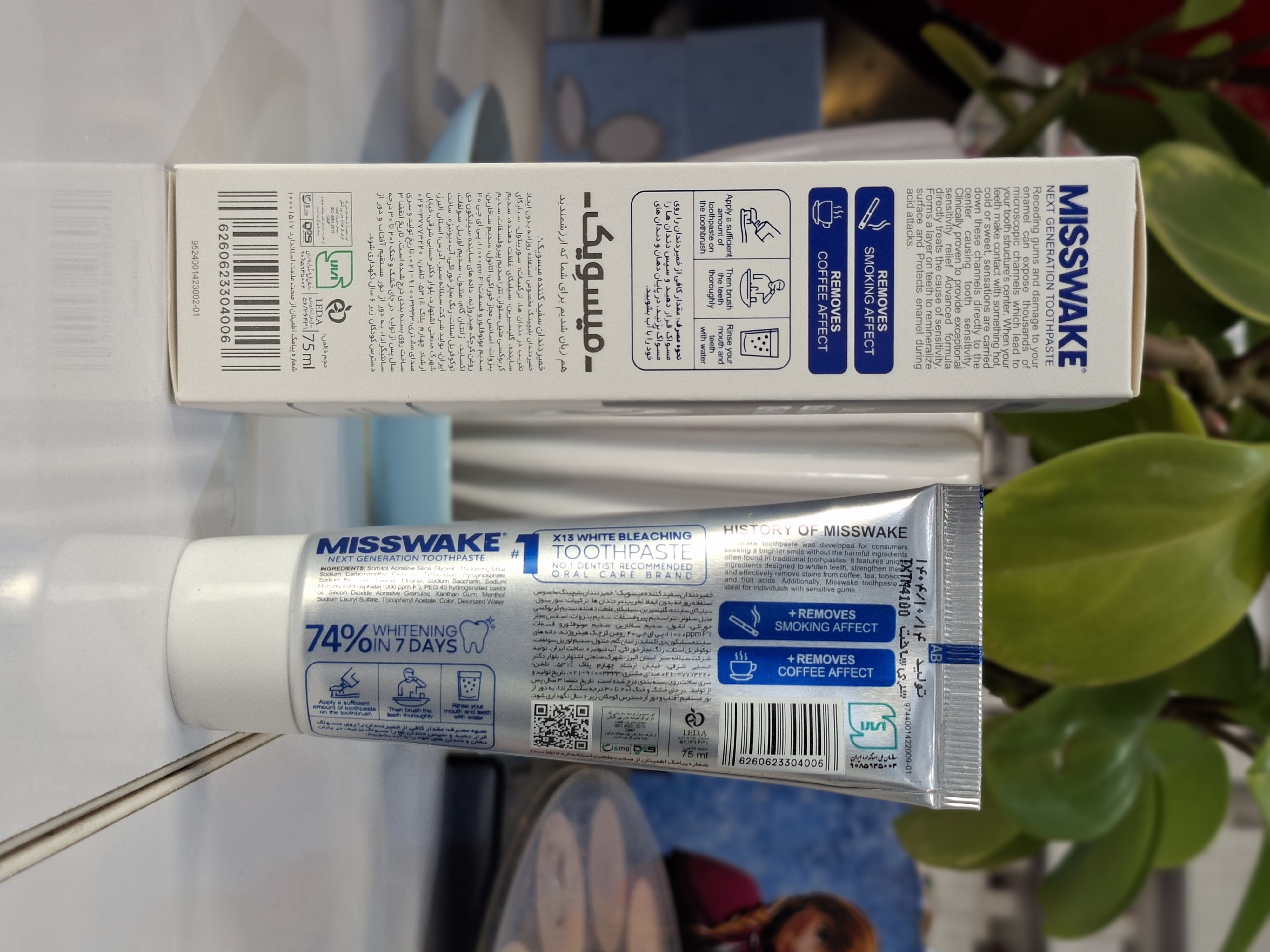 خمیردندان سفید کننده میسویک از بین برنده عالی جرم های ایجاد شده بر اثر سیگار و قهوه ، مناسب برای استفاده روزانه.